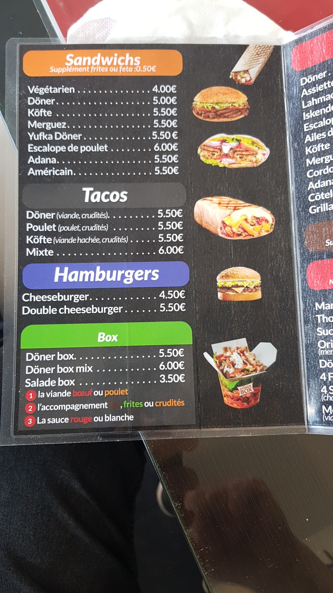 j'ai commandé un döner qui n'avait aucun goût, les tiramisus sont très petits pour le prix et les pizzas sont étonnements bonnes J'ai réessayé 6 mois après les kebabs n'ont toujours aucun goût je déconseille