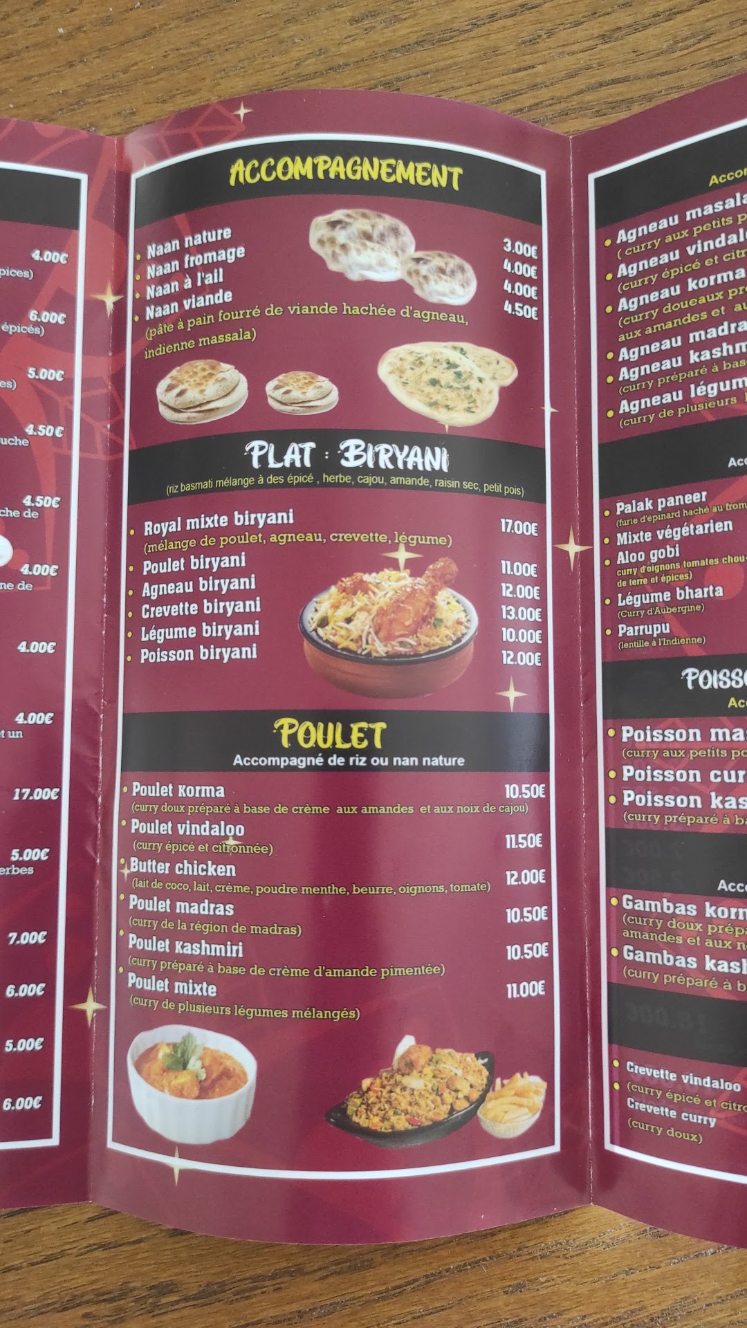 On a passé commande à emporter ce soir le 18 juillet... Les 2 jeunes filles qui m'ont accueillie sont vraiment gentilles et souriantes et bravo au cuisinier (le papa d'une des jeune fille) c'était exquis! Je vous conseille les crevettes bhaji, les samoussas ultra bons et croustillants à souhait et les plats : poulet biryani et poisson kashmiri exquis... Ils sont ouverts depuis une semaine et j'espère pour longtemps... Ce restaurant est situé dans la rue de l'abreuvoir Petite rue avec peu de passage malheureusement mais allez y les yeux fermés. Restaurant propre... Personnel agréable et cuisine avec beaucoup de goût. Très bon rapport qualité prix et copieux.