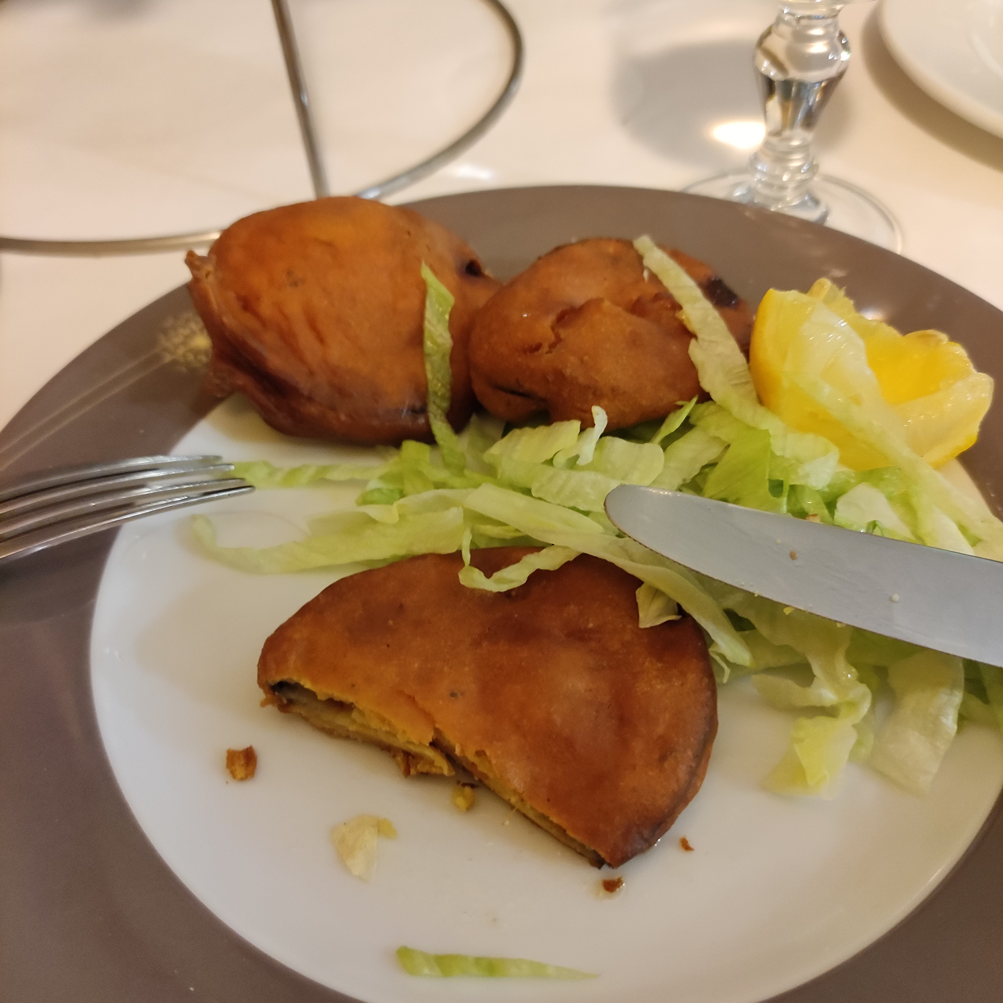 Je suis partagée... Service souriant et sympathique, mais les serveurs étaient perdus, mélangeant les commandes des différentes tables (resto pourtant pas rempli). Les tarifs sont vraiment très corrects, mais la nourriture... Hé bien, ça dépend. Nous avons pris des thali. J'ai apprécié ma viande hachée et le curry d'aubergines, très bon, le riz bien cuit. Ma collègue avait pris des épinards au fromage, pas terribles, et des beignets d'aubergines, très secs. J'ai demandé un thé épicé au lait, on m'a répondu qu'il faudrait trop de temps pour le préparer. 🫤
