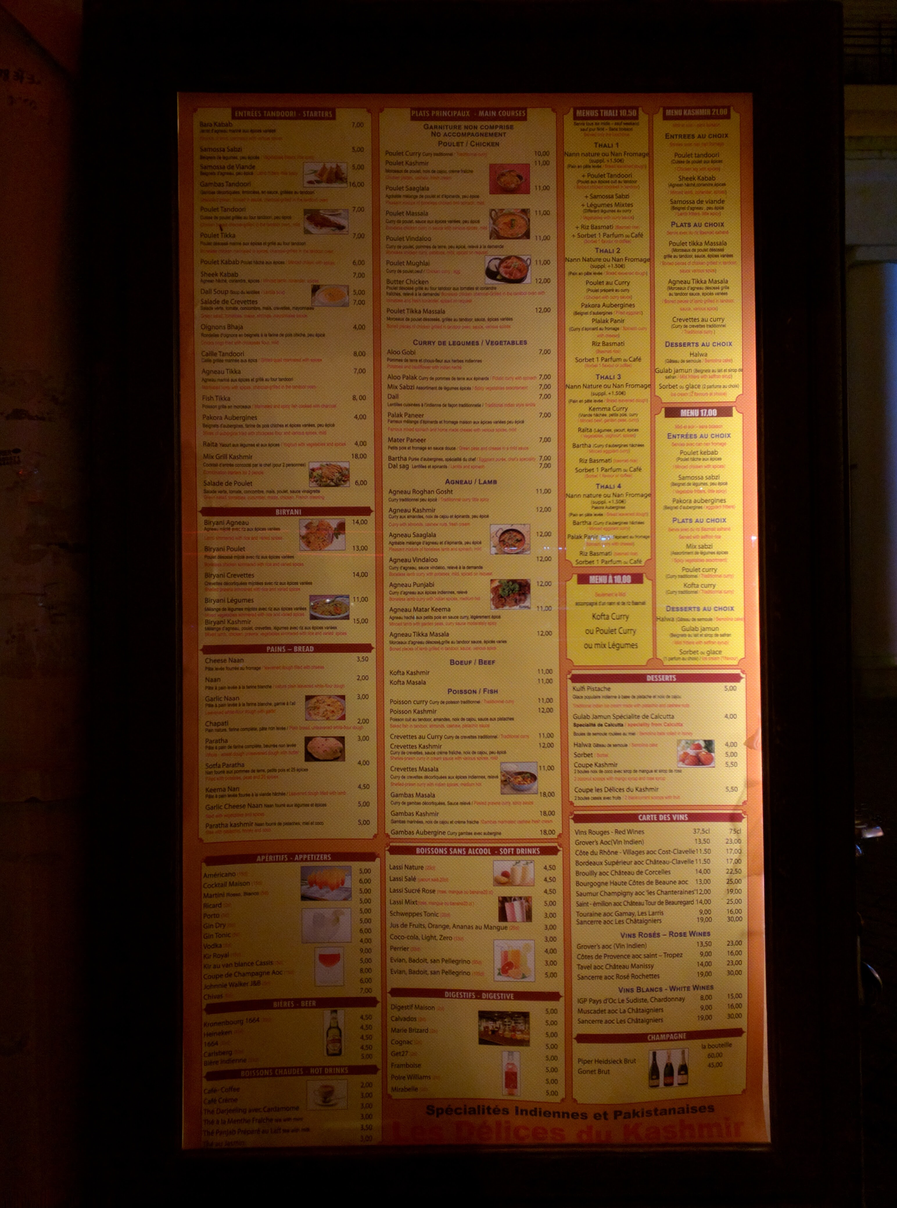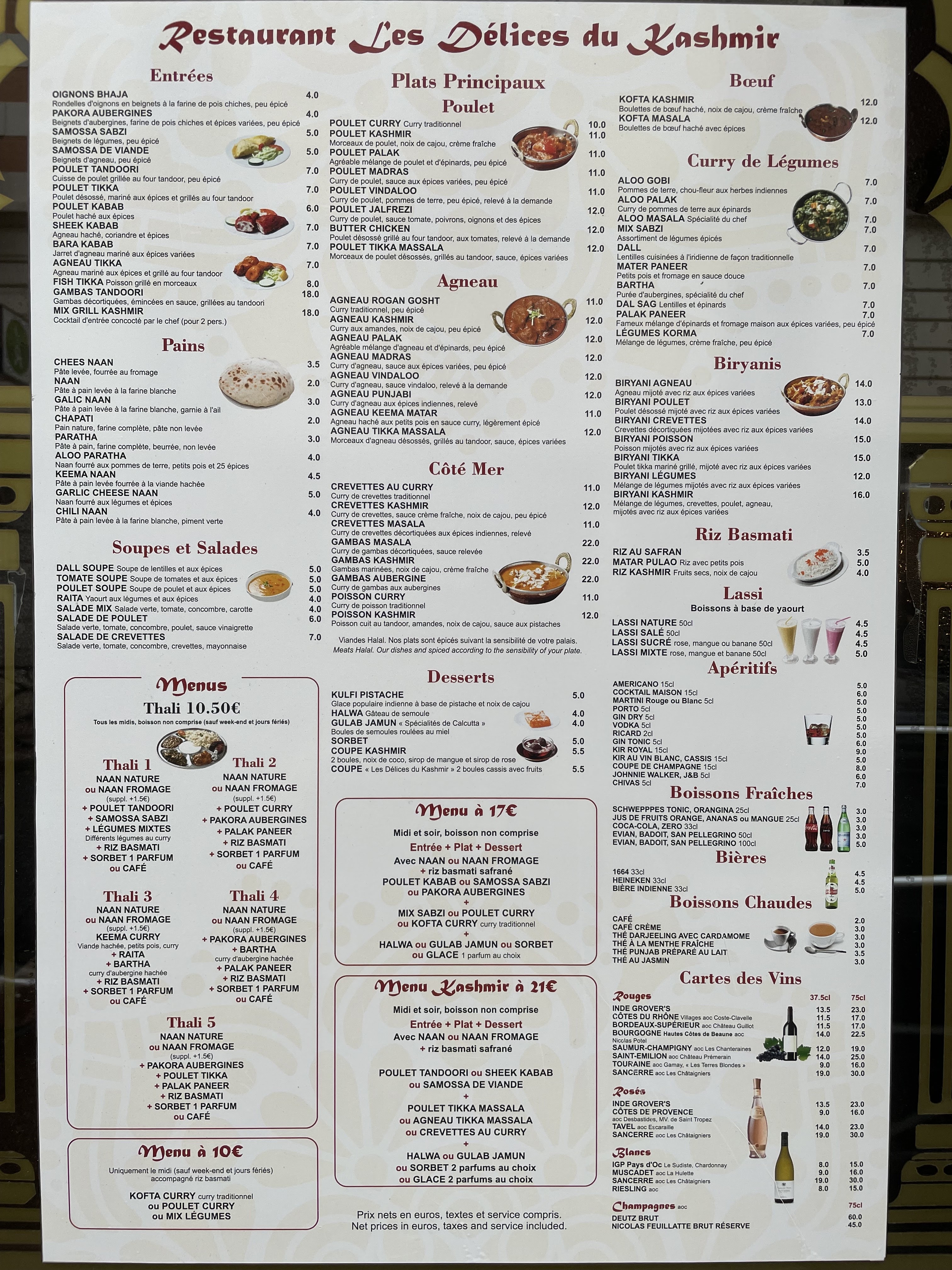 Situé à Levallois-Perret entre les stations de métro Pont de Levallois et Anatole France, les Délices du Kashmir proposent une cuisine indienne classique. A noter, pour chaque plat, il nous est demandé le niveau de Spicy souhaité, ce qui est très appréciable. J'y suis allé un samedi soir et le resto était tout simplement plein. Pas facile à gérer pour le serveur unique qui gérait à la fois la salle, les commandes, les boissons, les commandes à emporter et les livreurs Uber Eats. Au demeurant, cela n'a rien changé à la qualité de mon Kofta Kashmir (des boulettes de viandes, crème fraîche et noix de cajou), ni à mon riz Kashmir (riz basmati, noix de cajou et fruits secs et confits). Tout a été très correct.