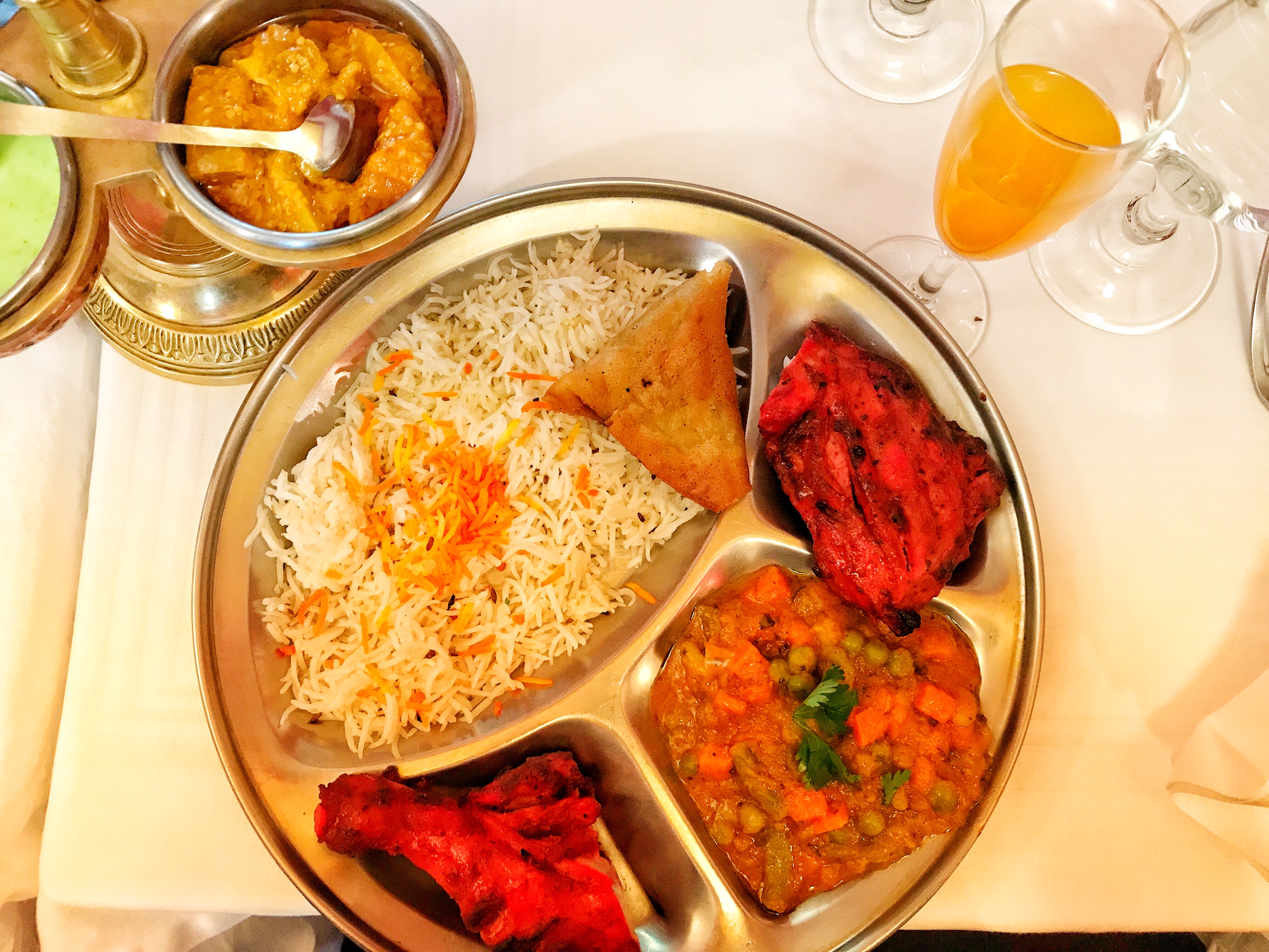 Restaurant indien bon et efficace. Petit apéritif offert (jus ou rosé). Les 3 menus Thali comprenant un plat + naan+ dessert ou café sont très bon marché.
