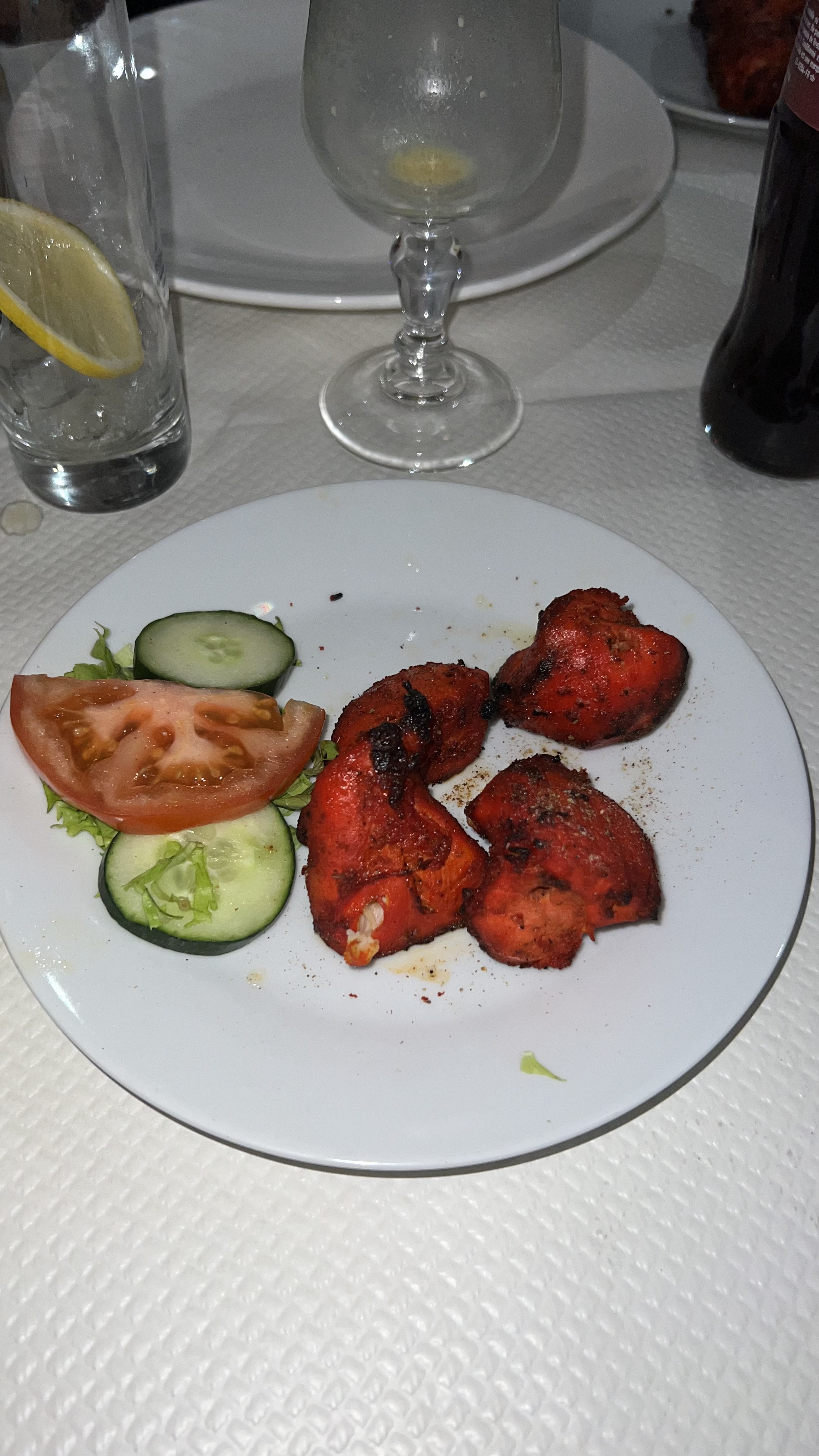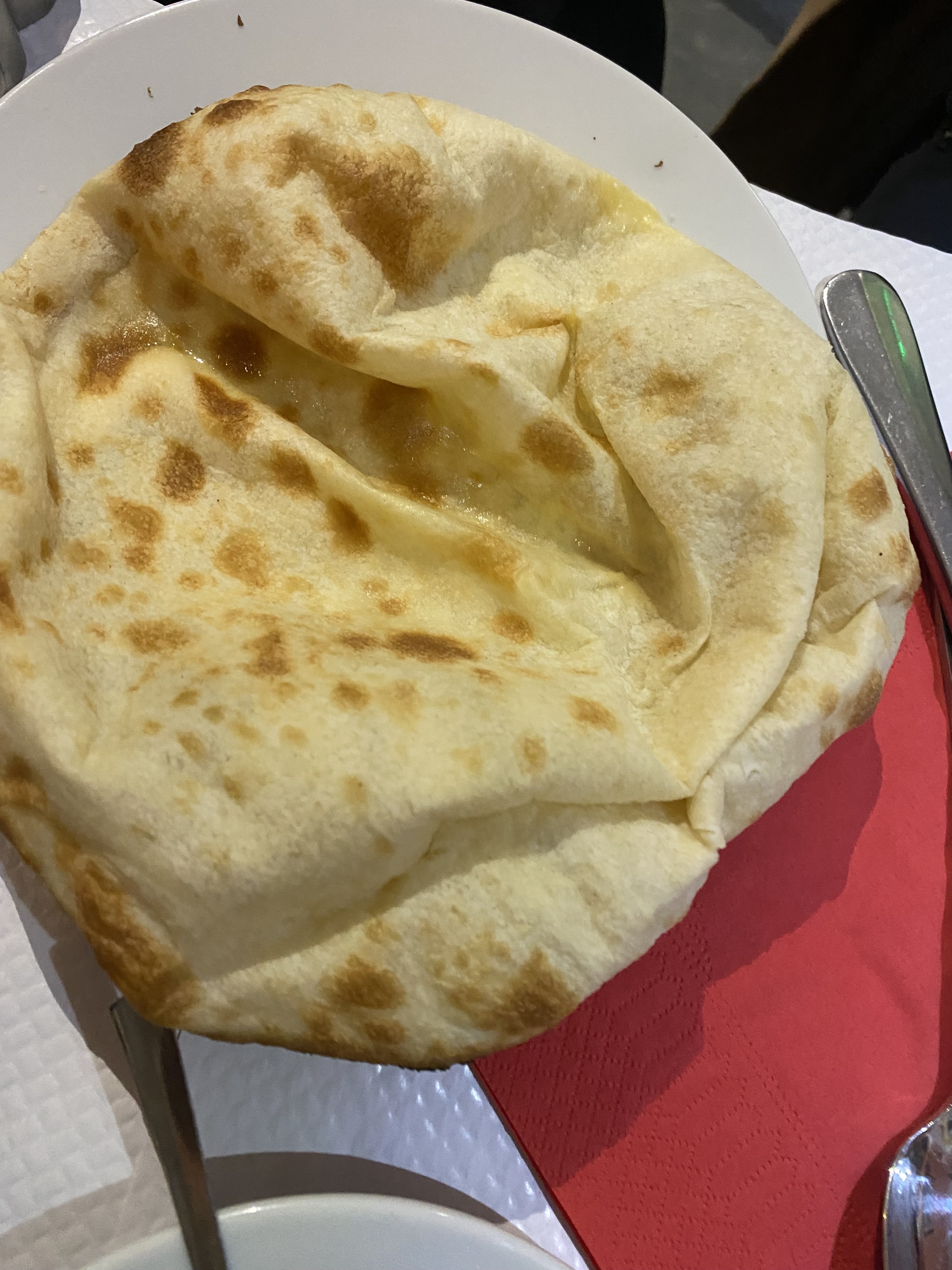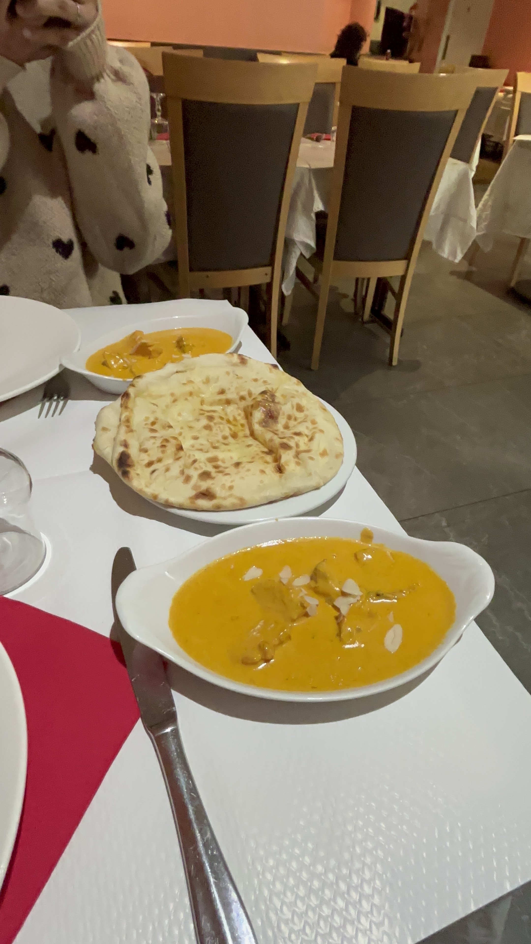 Nous étions 2, après avoir remarqué que le naan était sucré, nous avons demandé à le changer pour un pain non sucré, résultat un autre naan plein de sucre arrive. Sinon le reste c’est classique