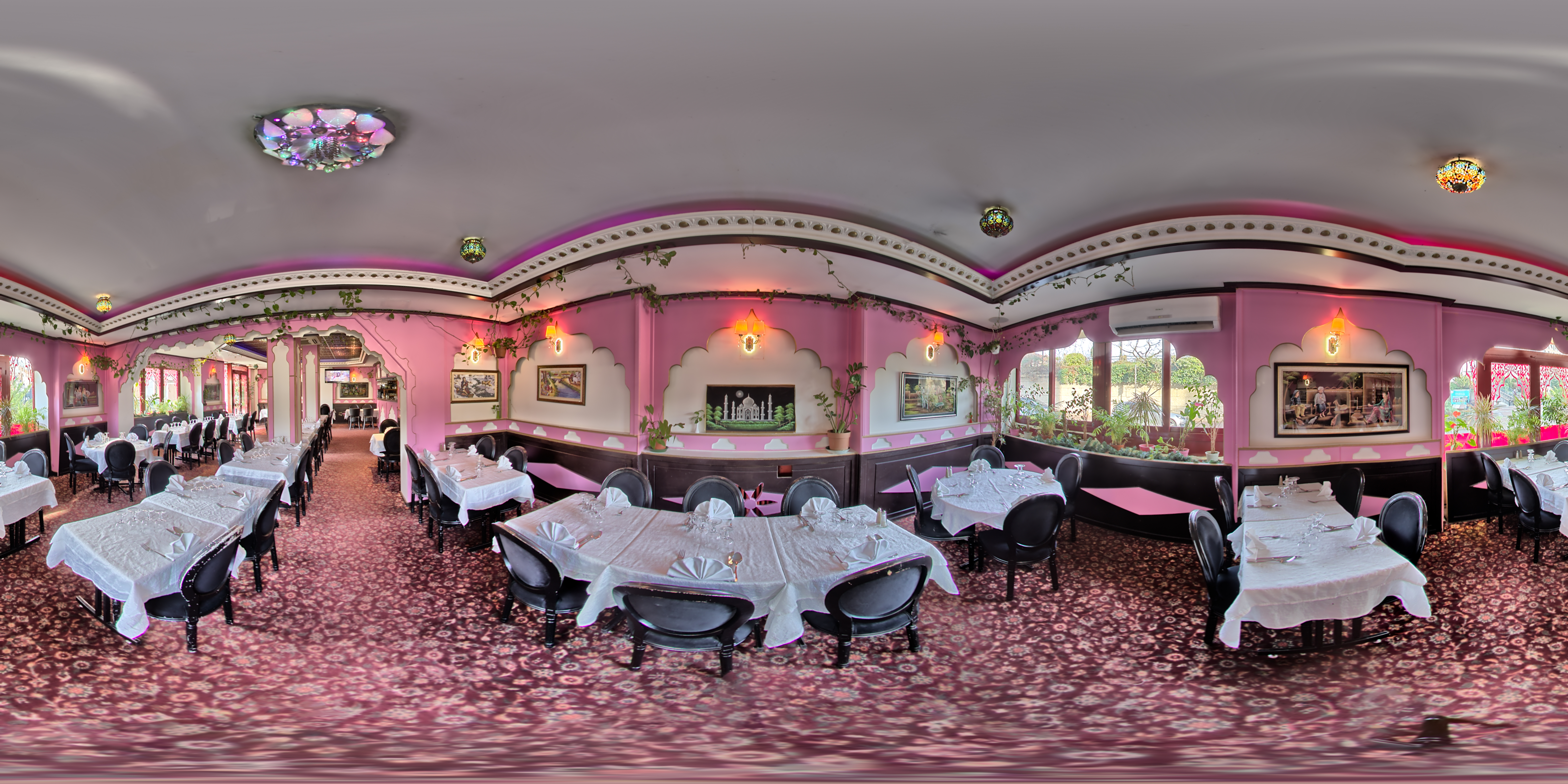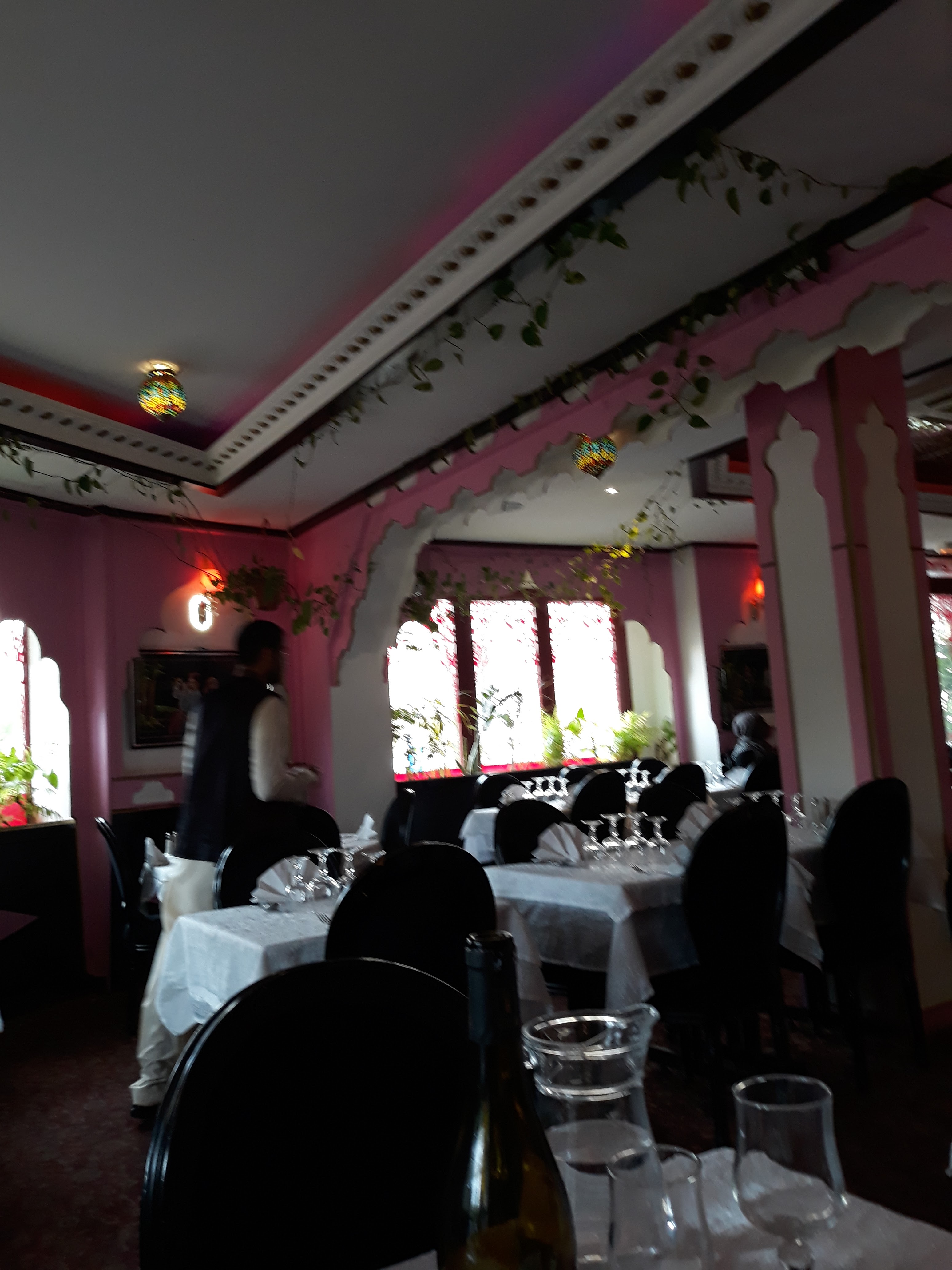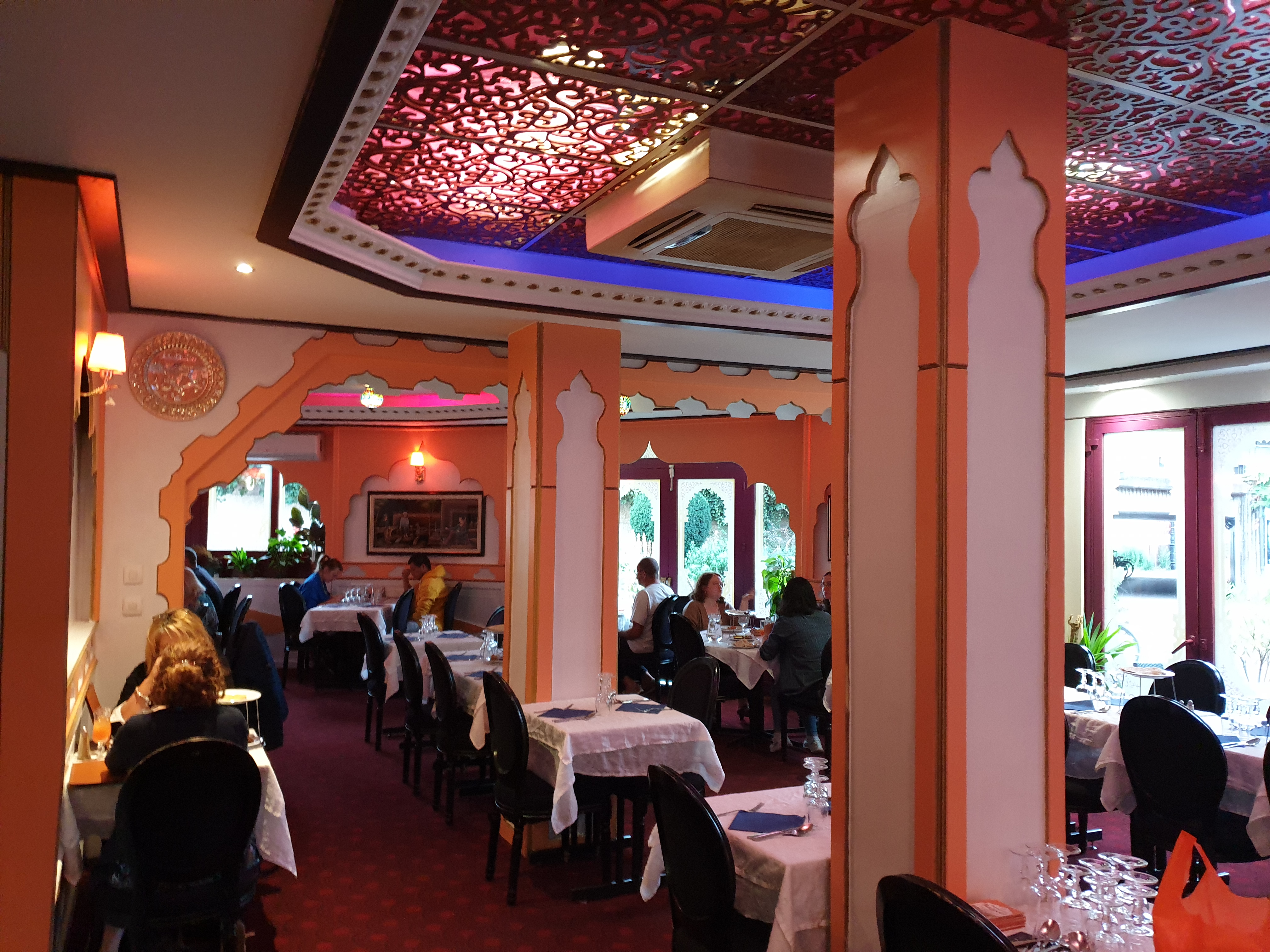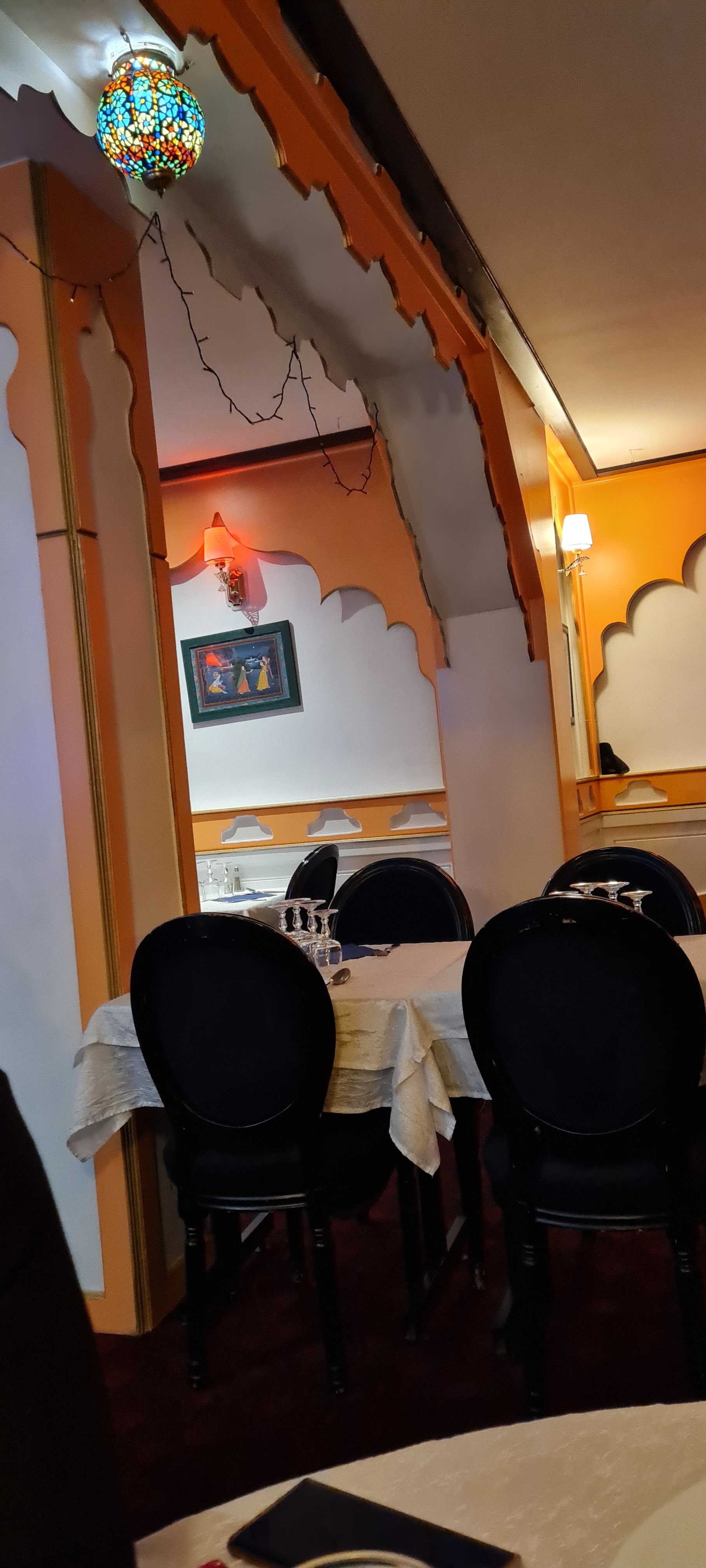 Assez inattendu lorsque l'on est à l'extérieur du bâtiment. L'intérieur est spacieux, richement décoré, l'ambiance est assurée par une forte odeur d'encens et les costumes des serveurs. La carte est longue, peut-être trop d'ailleurs. On se pose la question de la qualité des mets. Mais il n'en est rien. La nourriture est très bonne. J'ai personnellement pris une assiette avec sauce aux amendes, poulet et des samossa légumes. Rien à redire. Le seul bémol de ce restaurant reste le qualité de service. Je n'ai pas trouvé les couverts, les verres, les carafes, à la hauteur du chic du lieu. J'ai aussi trouvé les serveurs un peu expéditif. Mais c'est vraiment pour avancer un point négatif que j'écris ça. Enfin le prix : très raisonnable si vous prenez une assiette comme moi.