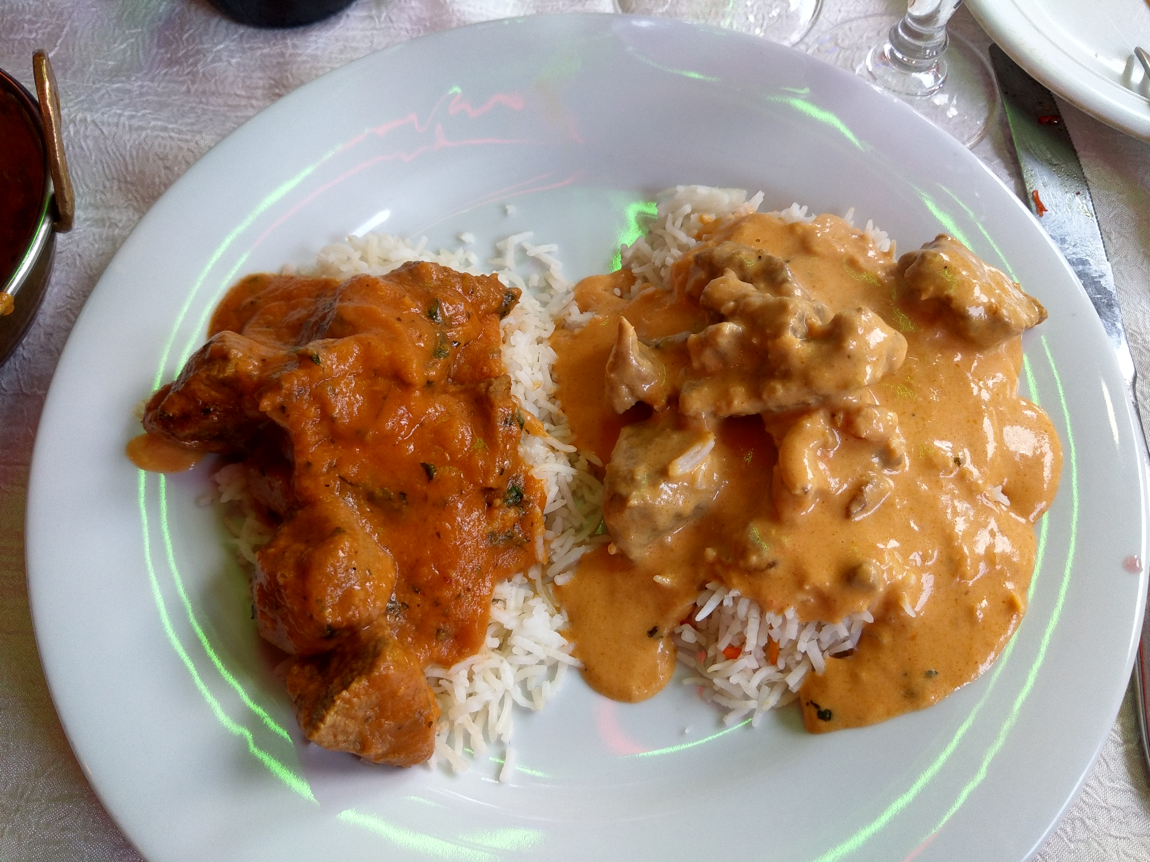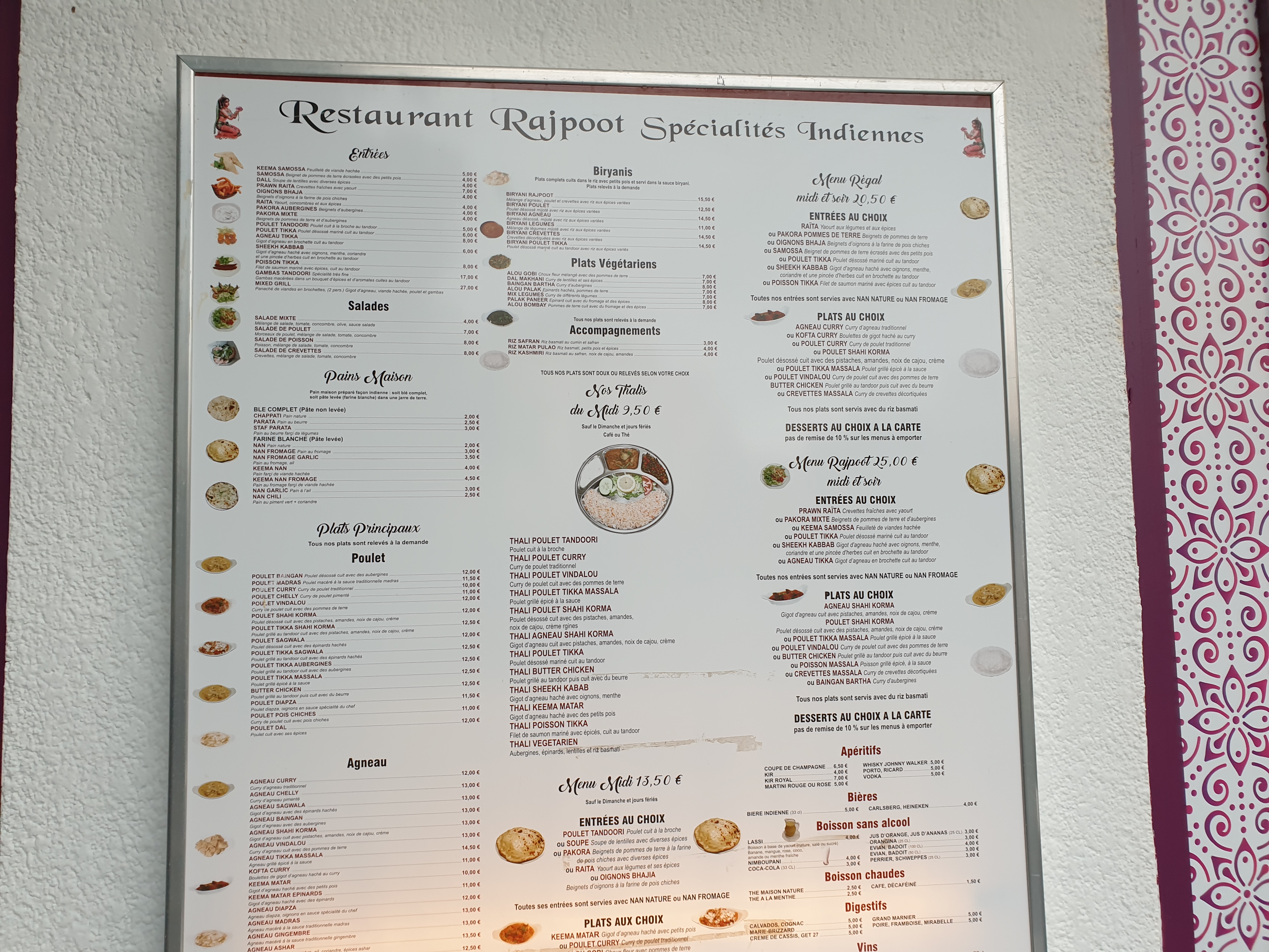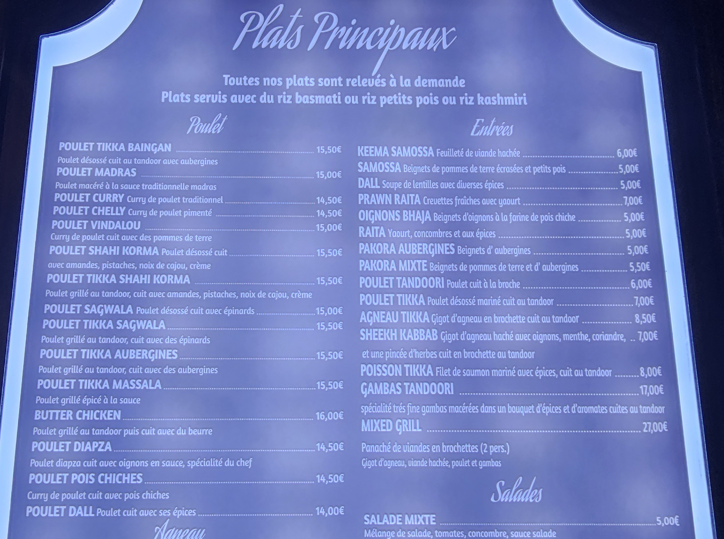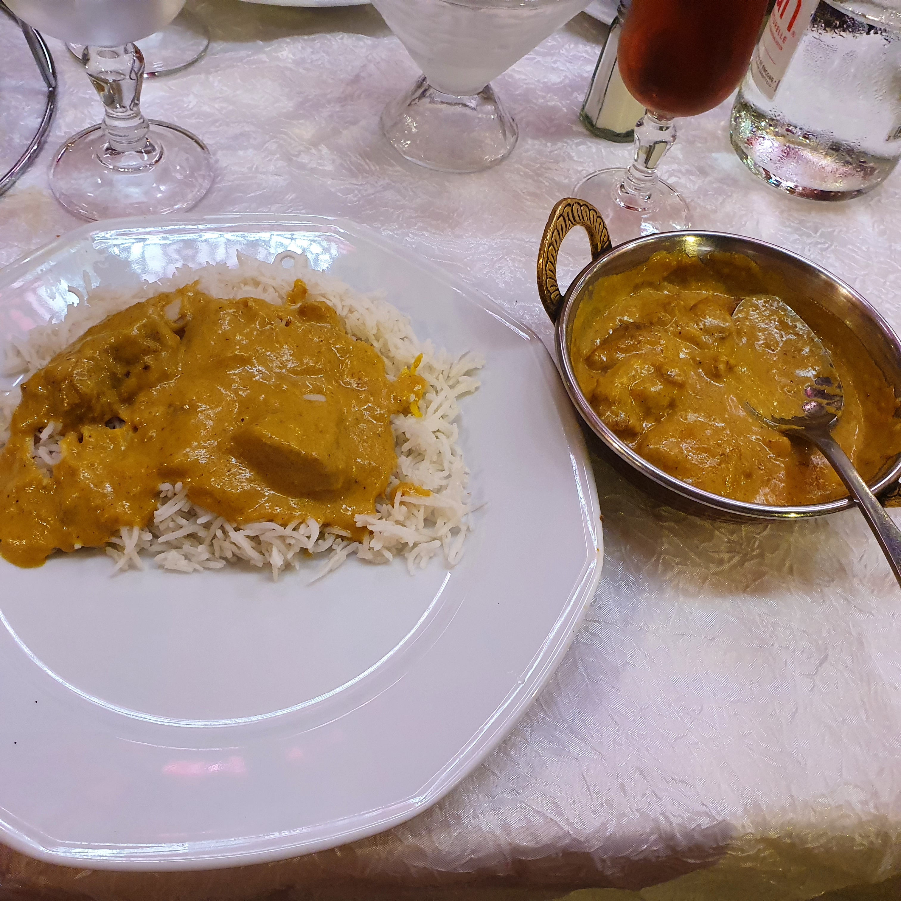 Je suis un peu confuse les photos de ce restaurant ne sont pas les bonnes C'est l'ancien rajpoot Les sauce des plats sont bonnes mais poulet est industriel pré cuit. Prédécoupé surgelé ex de plat chicken butter. Chicken shahi korma Les crevette c'est pareils surgelé décortiqué sans trop de goût dommage Très bien servi en revanche
