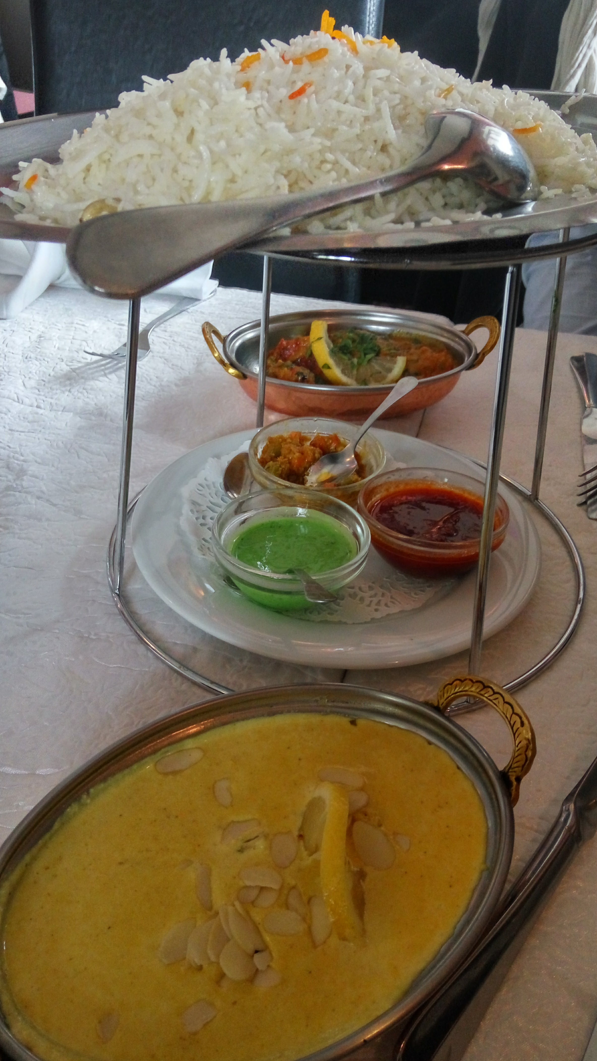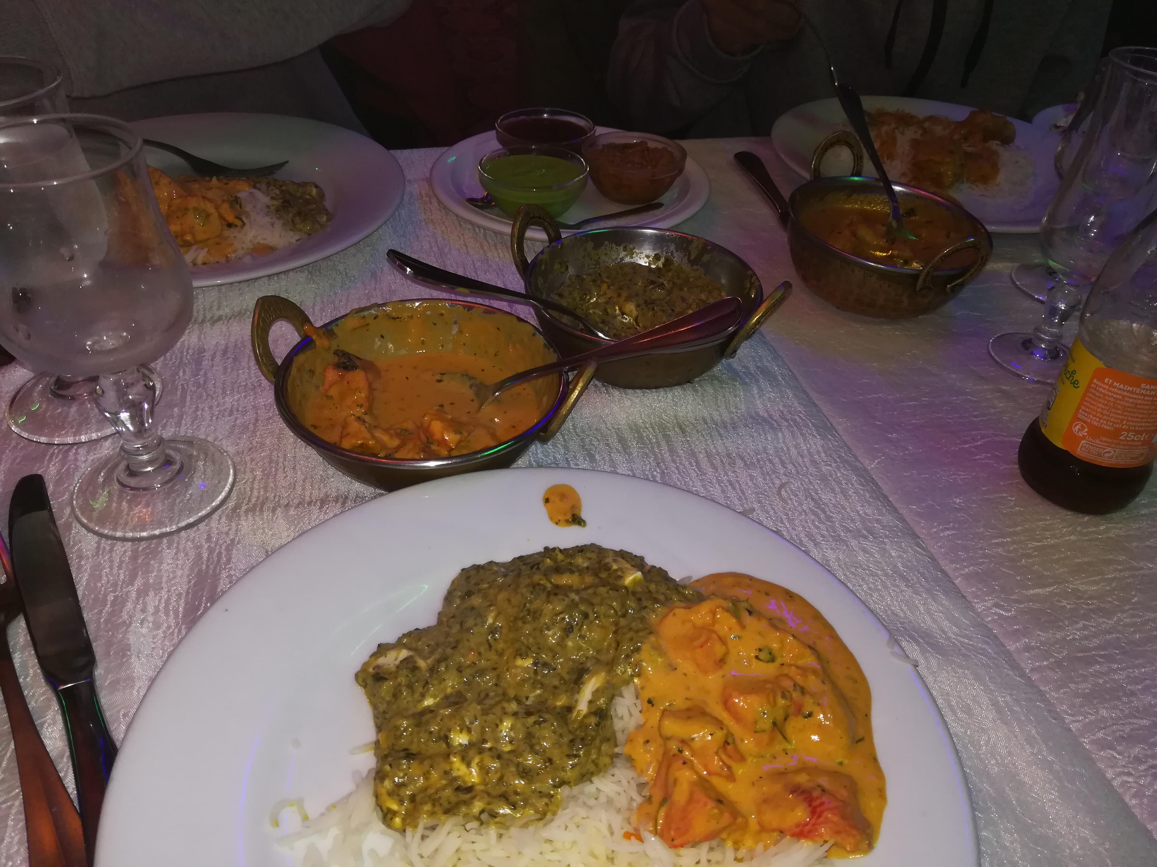 L'accueil est sympa mais les plats ne sont pas digne d'un restaurant indien de qualité. Ne surtout pas prendre les gambas grillées car ils vont vous servir un plat en sauce vert caca d'oie dans lequel trempe des corps de crevettes décortiquées... orné de 2 têtes de gambas brûlées qui ont dû faire plusieurs services ! Je ne recommande pas.
