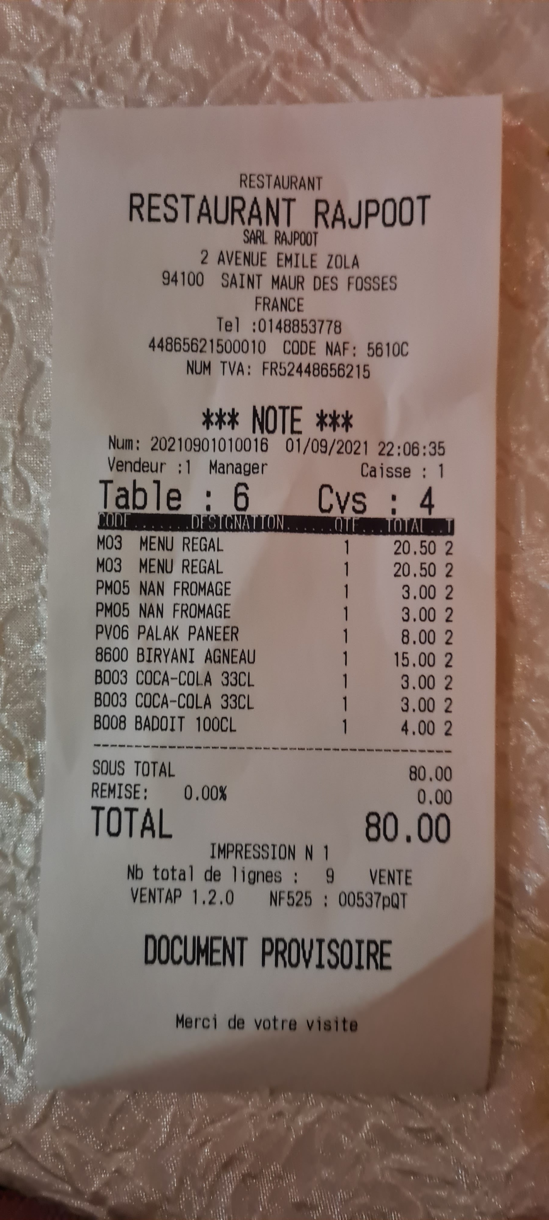 Bonjour Monsieur Desplaces, Merci milles fois pour avoir pris le temps de nous faire une retour de votre expérience avec le Rajpoot Saint-Maur. Nous prenons en compte toutes vos remarques et ferons en sorte d'améliorer le point cité. Nous sommes ravis que vous ayez passé un bon moment parmi nous. Passez une excellente journée et à bientôt !